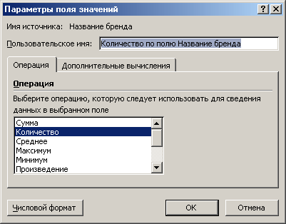 | Важно! Чтобы сводная таблица выводила именно количество непустых ячеек, а не, например, сумму по ним, необходимо в области сводной таблицы нажать правую кнопку «мышки», из появившегося меню выбрать «Параметры полей значений». Затем в появившемся диалоговом окне указать «Количество». |